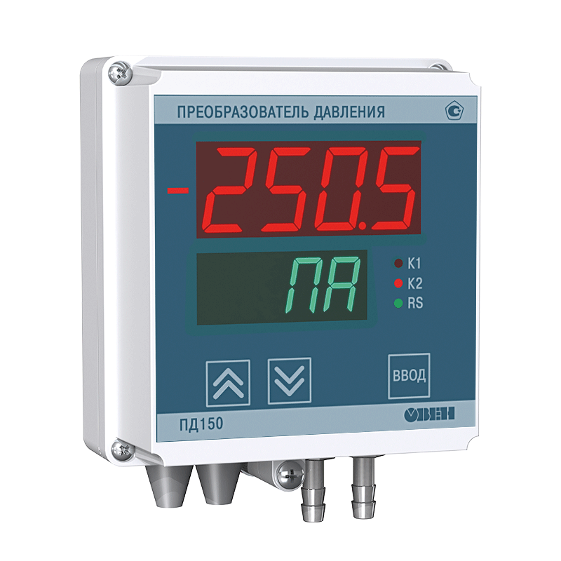 Электронный тягонапоромер, тягомер, перепадомер ОВЕН ПД150 представляет собой электроконтактный манометр с двумя силовыми реле и масштабируемым выходным сигналом RS-485 (Modbus RTU) или 4…20 мА. Высокоточный сенсор с открытым кремниевым кристаллом позволяет измерять давление неагрессивных к кремнию газов, в том числе горючих (метан) и дымовых (топочных).