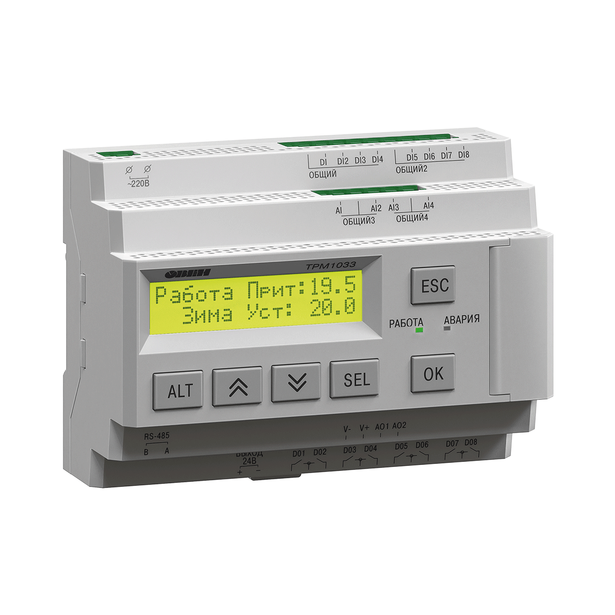 ТРМ1033 – это контроллер с готовыми алгоритмами для автоматизации вентиляционных систем. Подходит для управления приточными и приточно-вытяжными установками. Автоматика на базе ТРМ1033 позволяет контролировать работу стандартных элементов вентиляции и регулировать температуру воздуха в помещении.