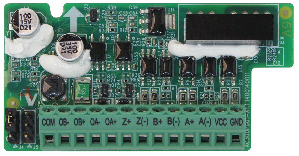 Энкодерная плата ПЭ1 предназначена для подключения инкрементального TTL-энкодера с частотой дифференциального сигнала до 500 кГц. Имеет встроенный источник питания 5 В. Плата предназначена для работы с ПЧВ3 [M01].